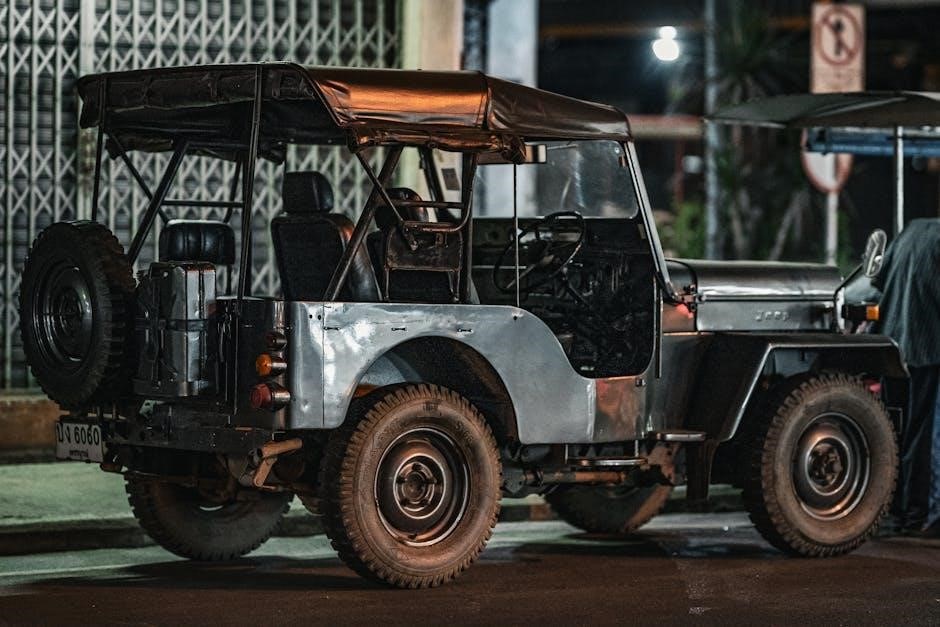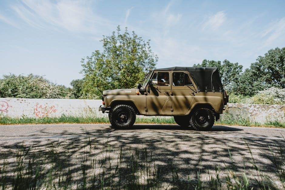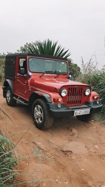 For off-road adventures, the ‘Rock’ mode is crucial, maximizing articulation and low-end torque for navigating challenging terrain. The manual details how to engage each mode via the Selec-Terrain system, emphasizing the appropriate use cases for each setting. Understanding these modes, as outlined in the manual, allows drivers to tailor the vehicle’s performance to their specific needs and environmental conditions.