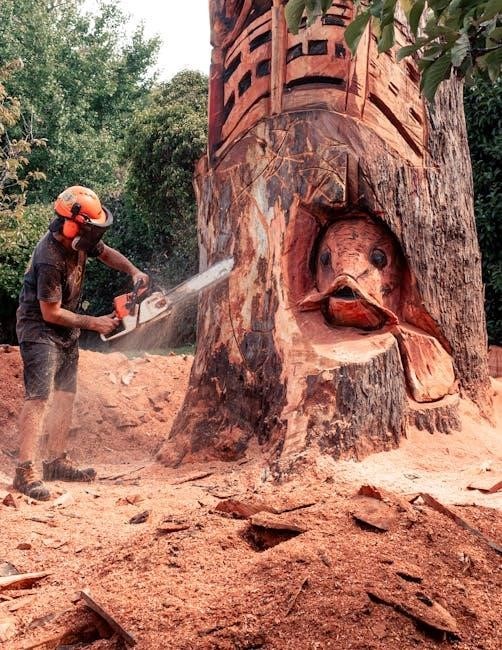 Prior to long-term storage‚ drain fuel and oil from the chainsaw to prevent deterioration and potential damage. Clean the exterior thoroughly‚ removing debris and sawdust. Store in a dry‚ secure location‚ inaccessible to children.