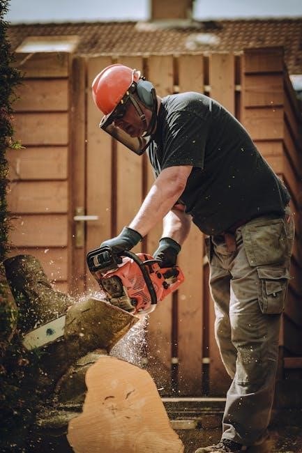 WARNING: Operating a chainsaw is inherently dangerous. Always read the entire Operator’s Manual before use. Wear appropriate personal protective equipment‚ including safety glasses‚ hearing protection‚ gloves‚ and sturdy footwear. Ensure a firm grip and maintain a safe distance from bystanders.