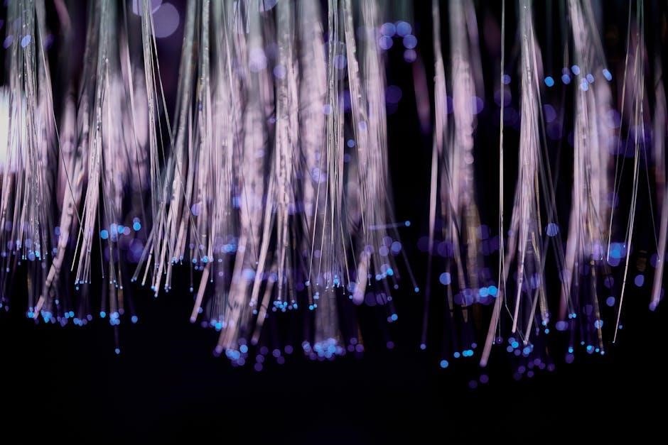Fiber optic cables transmit data as light pulses through glass or plastic strands, offering significantly higher bandwidth and speed compared to traditional copper cables․ These cables are crucial for modern networks, supporting applications like 5G, high-definition video streaming, and cloud computing․