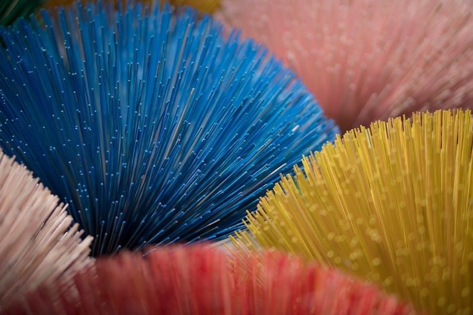 Color codes, aided by PDF charts, streamline cable installation, network mapping, and troubleshooting, ensuring efficient fiber optic network deployment and maintenance․