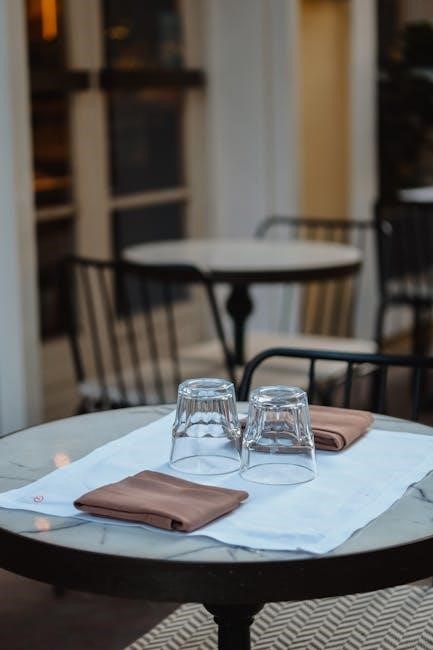 Accommodate larger parties with appropriate table combinations‚ ensuring seamless service access․ Be prepared to adjust arrangements based on reservations and walk-in flow․ A well-organized seating plan maximizes restaurant capacity while upholding an atmosphere of refined elegance․