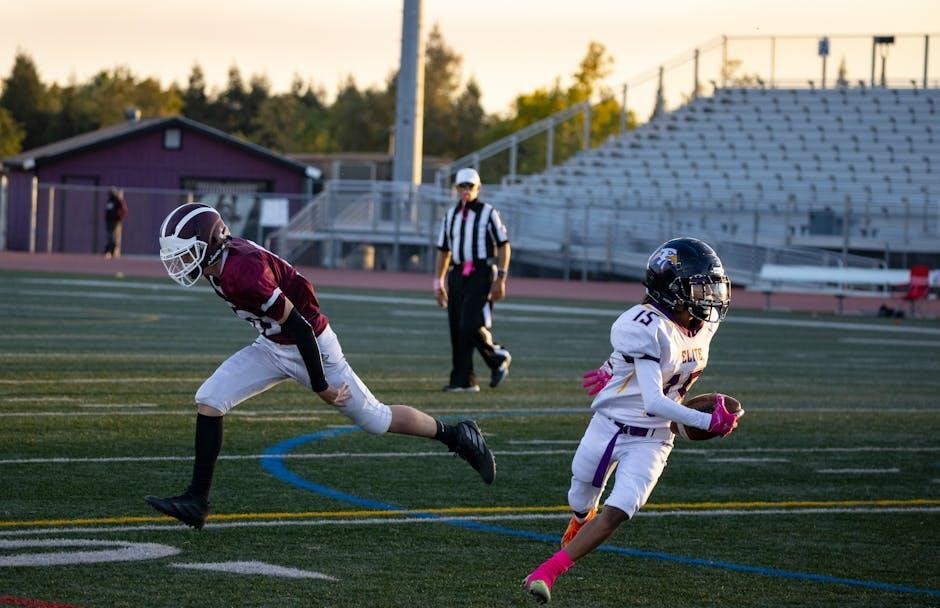 Football referee signals PDF details nuanced penalties like illegal formation and unsportsmanlike conduct, requiring precise hand movements for accurate game management.
