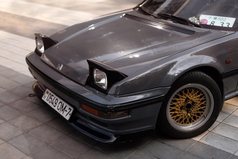Honda Prelude manuals emphasize proactive rust prevention through regular undercoating and inspection of common areas like wheel arches and floor pans. Repair involves removing rust with abrasive tools, applying rust converters, and protecting with primers. Welding patches may be necessary for severe damage. The manual details proper surface preparation and paint application techniques to ensure lasting repair and prevent future corrosion, extending the vehicle’s lifespan.