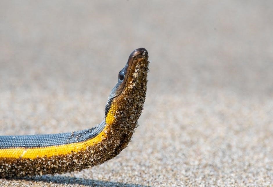Rattlesnakes are iconic venomous snakes‚ easily identified by the distinctive rattle at the end of their tail‚ used as a warning signal. These pit vipers possess a triangular head‚ elliptical pupils‚ and heat-sensing pits between their eyes and nostrils‚ aiding in prey detection.